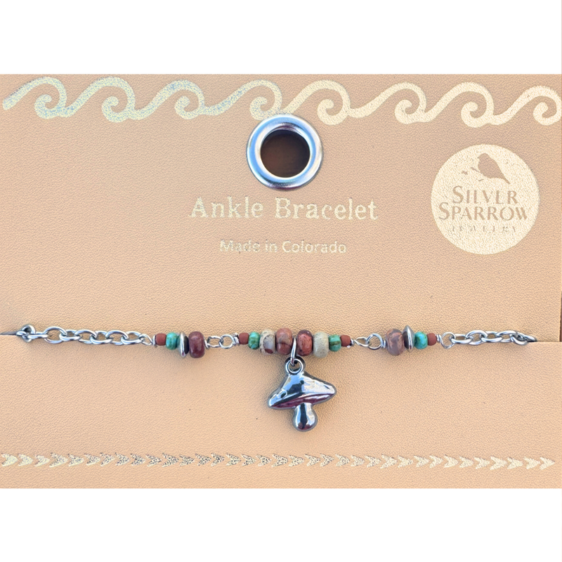 Mushroom ankle bracelet with jasper