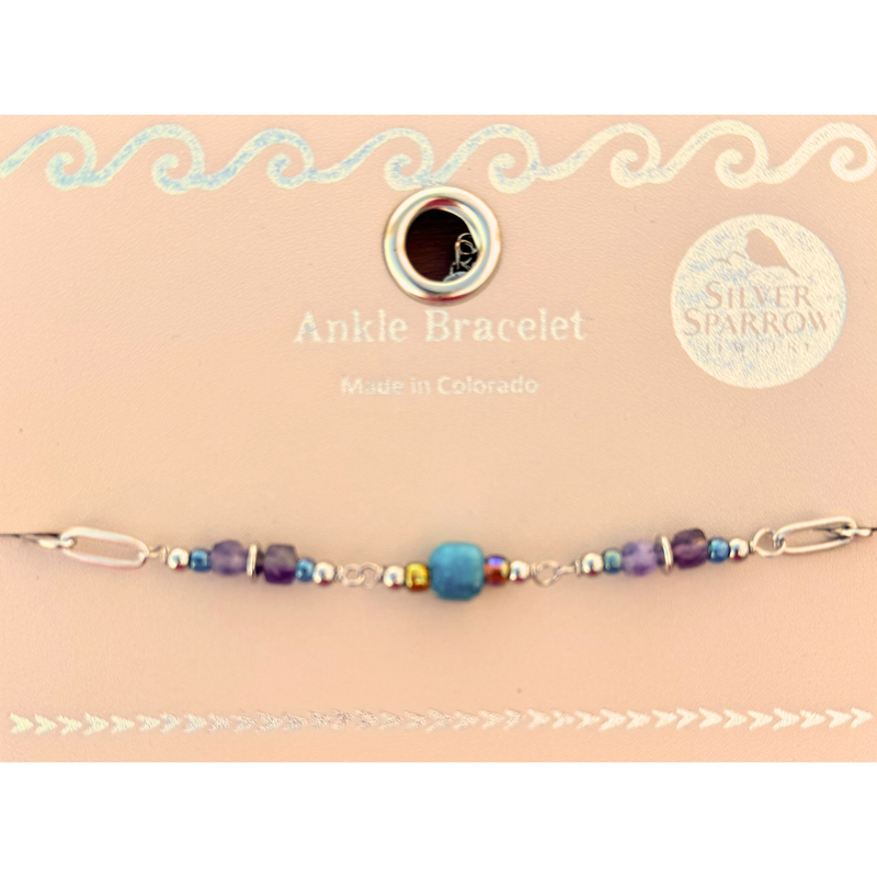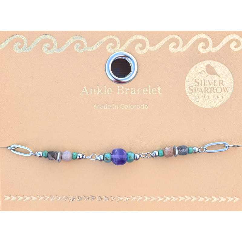 Amethyst and sunstone cube bead ankle bracelet