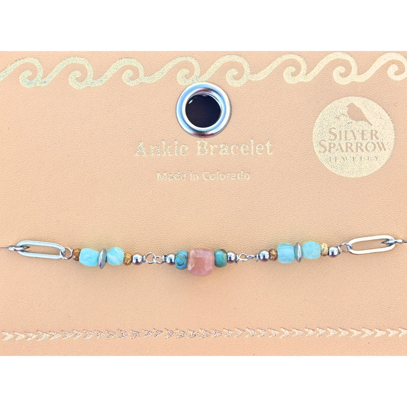 Sunstone and amazonite cube bead ankle bracelet