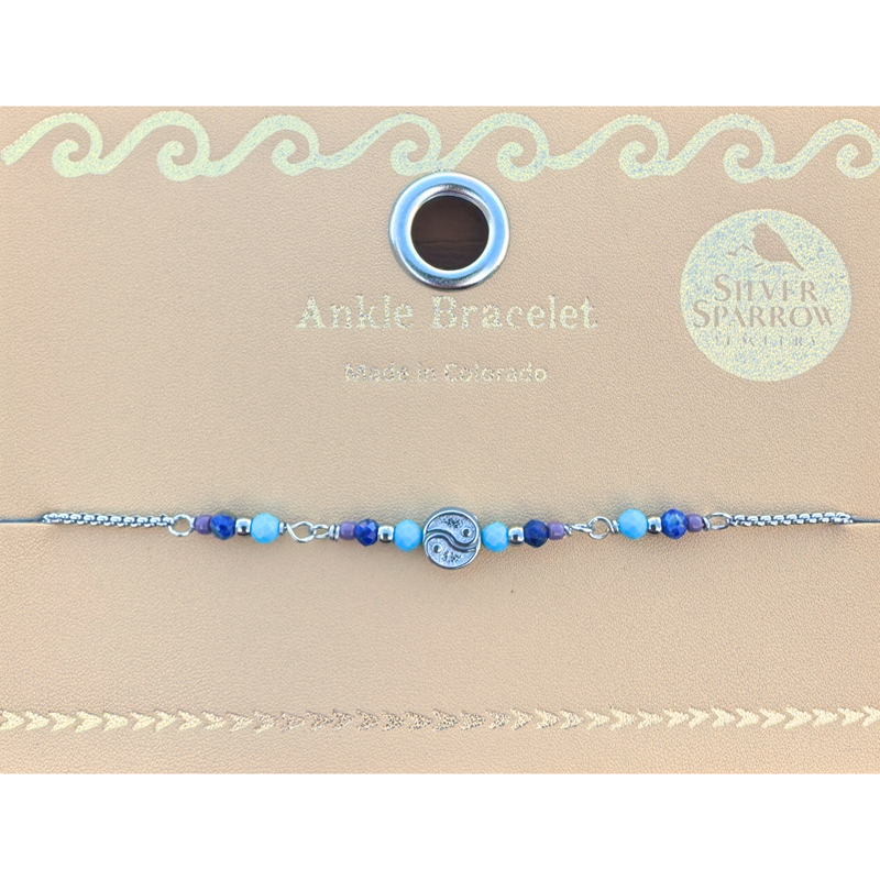 Yin Yang bead with lapis and turquoise ankle bracelet