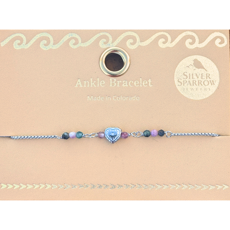 Heart bead with tourmaline ankle bracelet
