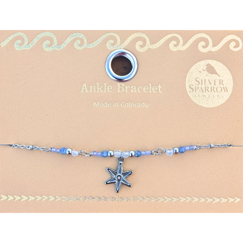 Star charm with kyanite and aquamarine ankle bracelet