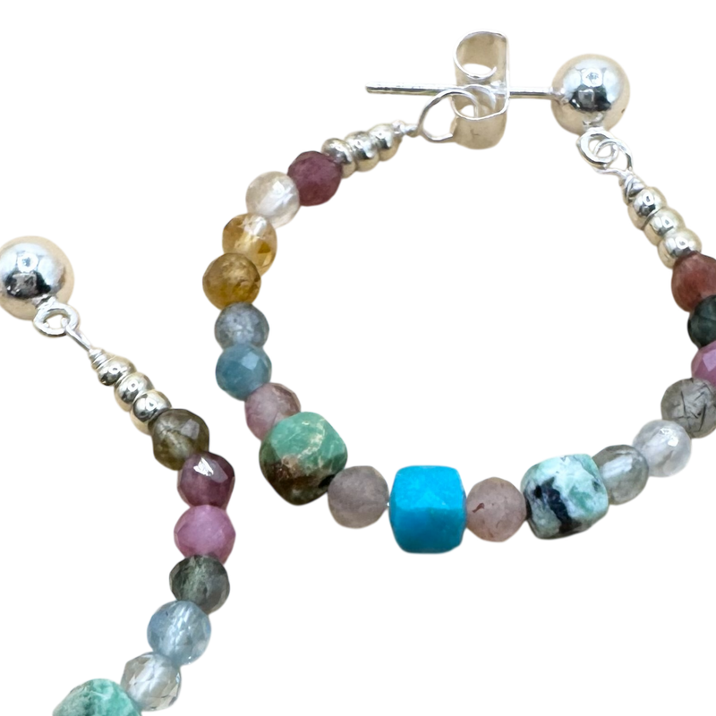Hoop earrings with apatite, tourmaline and yellow turquoise