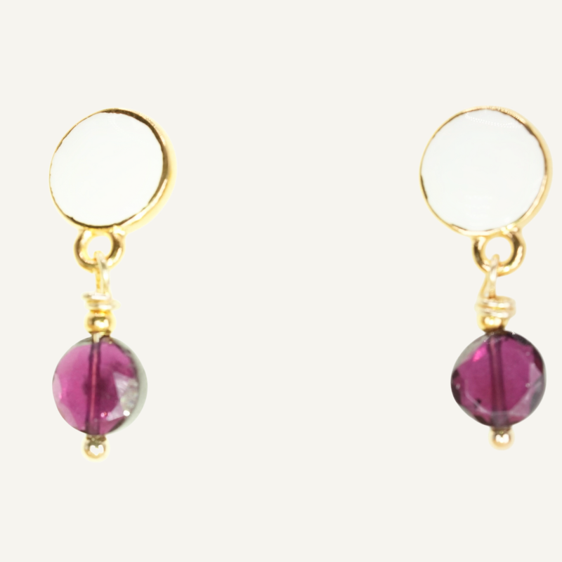 White Enamel and Garnet Stud Earrings