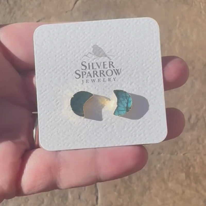 Natural Labradorite Lunar Stud Earrings