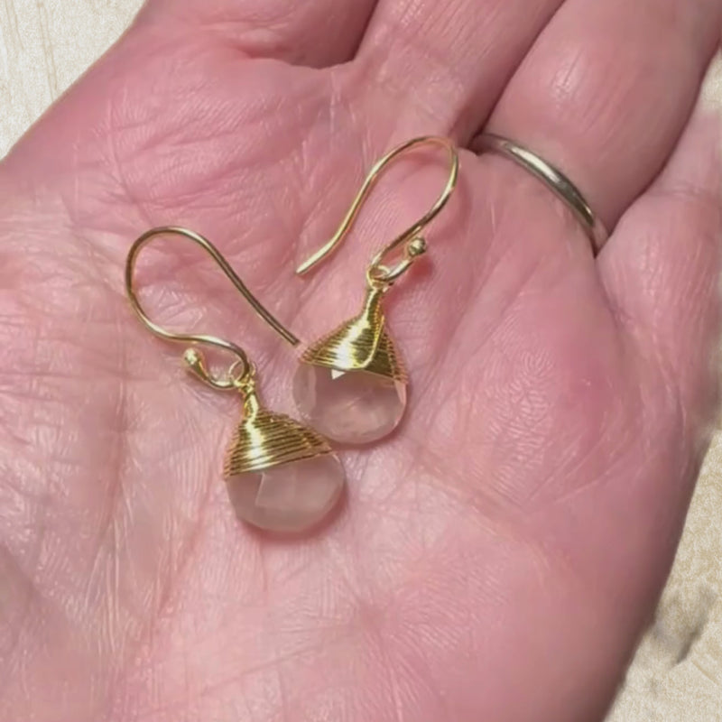 Rose Quartz Wrapped Drop Earrings