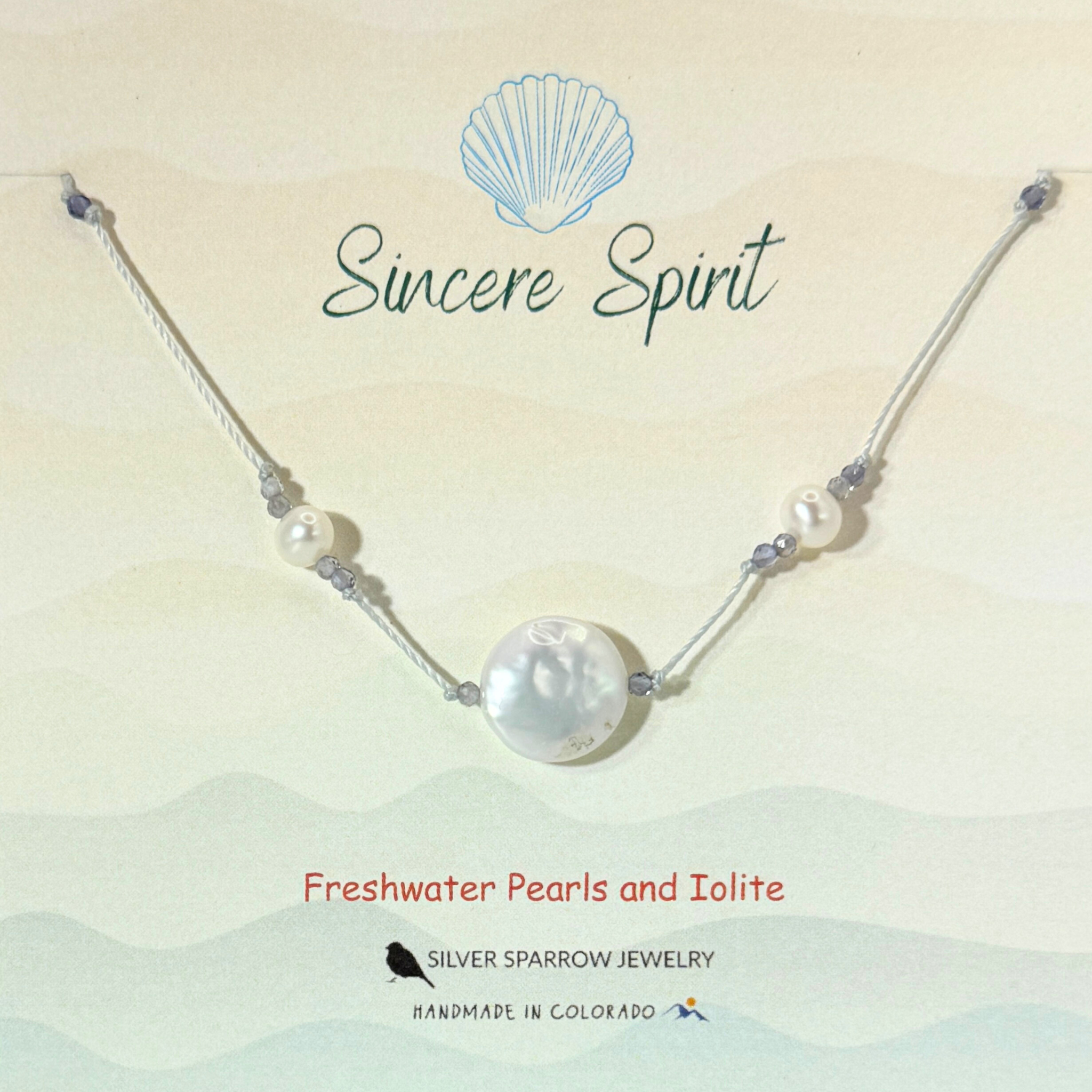 This simple yet elegant necklace features a stunning, hand-picked 10-12 white coin pearl flanked by smaller pearls and charming faceted iolite beads. The necklace is hand-knotted on delicate but durable cord, perfect for adding the magic of the water to your everyday style!