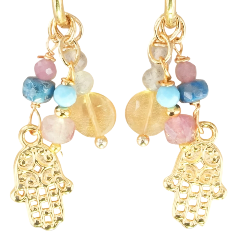 Charma Gold Hamsa Earrings with Stone Bauble Charms – Interchangeable Statement Jewelry