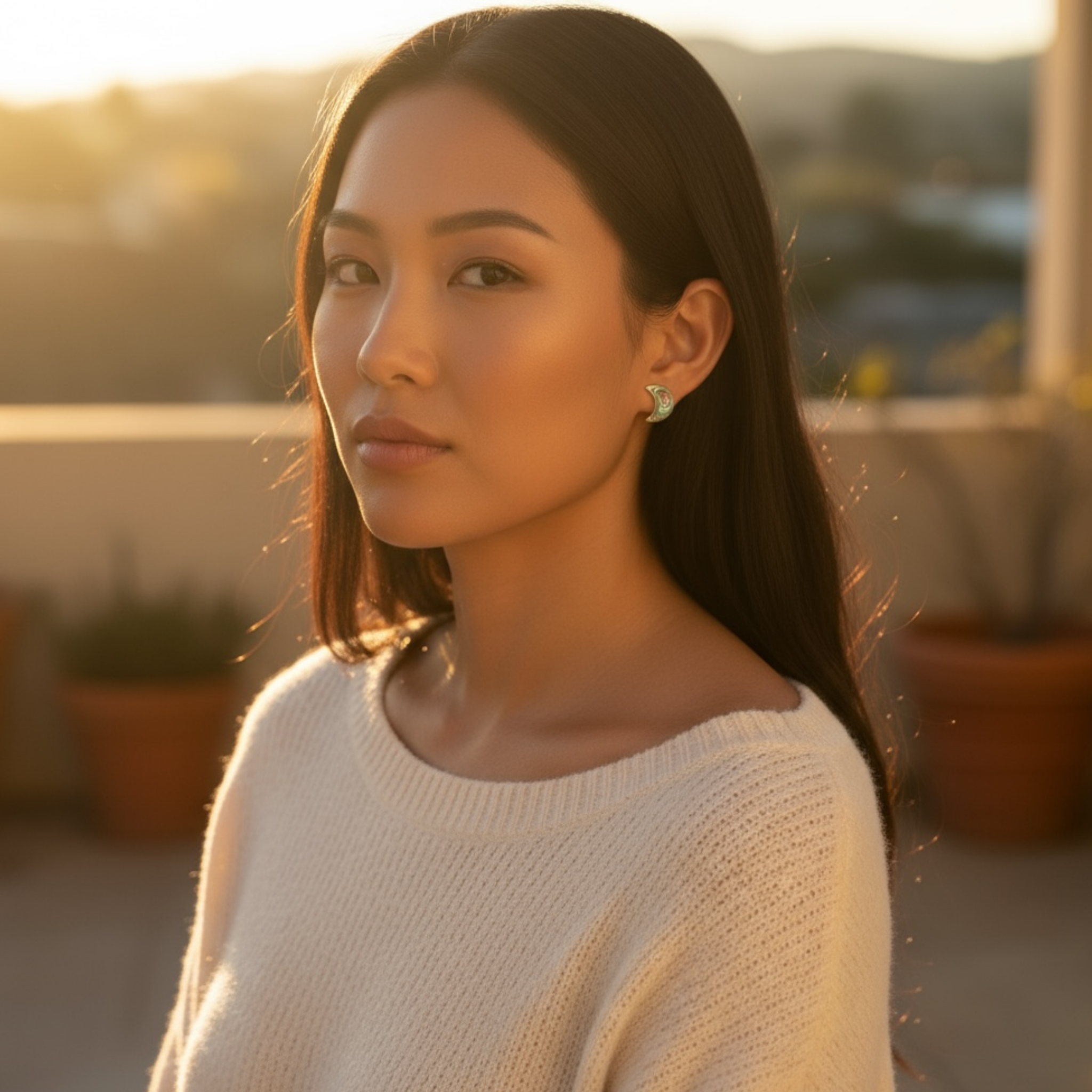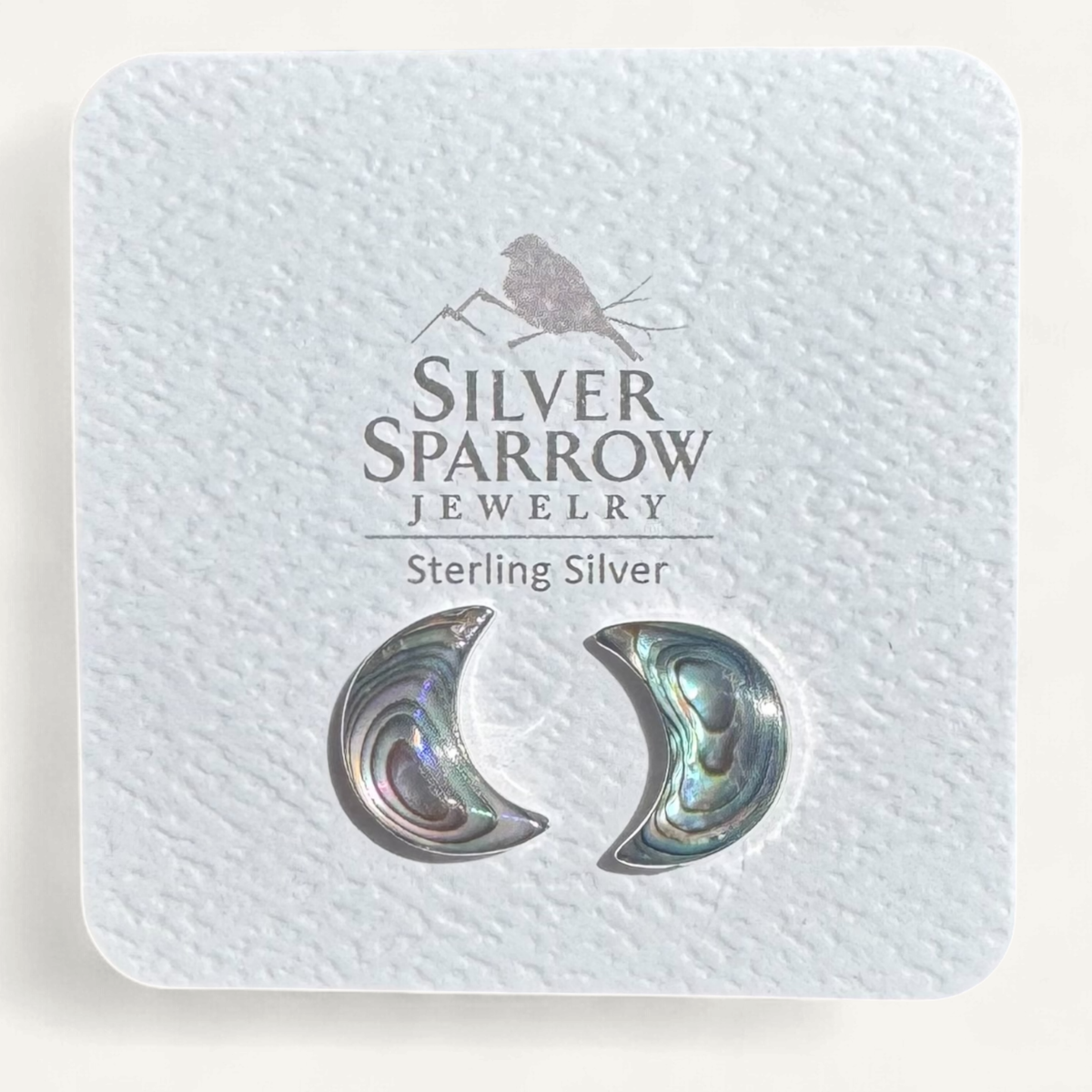 Sterling Silver Moon Abalone Stud Earrings