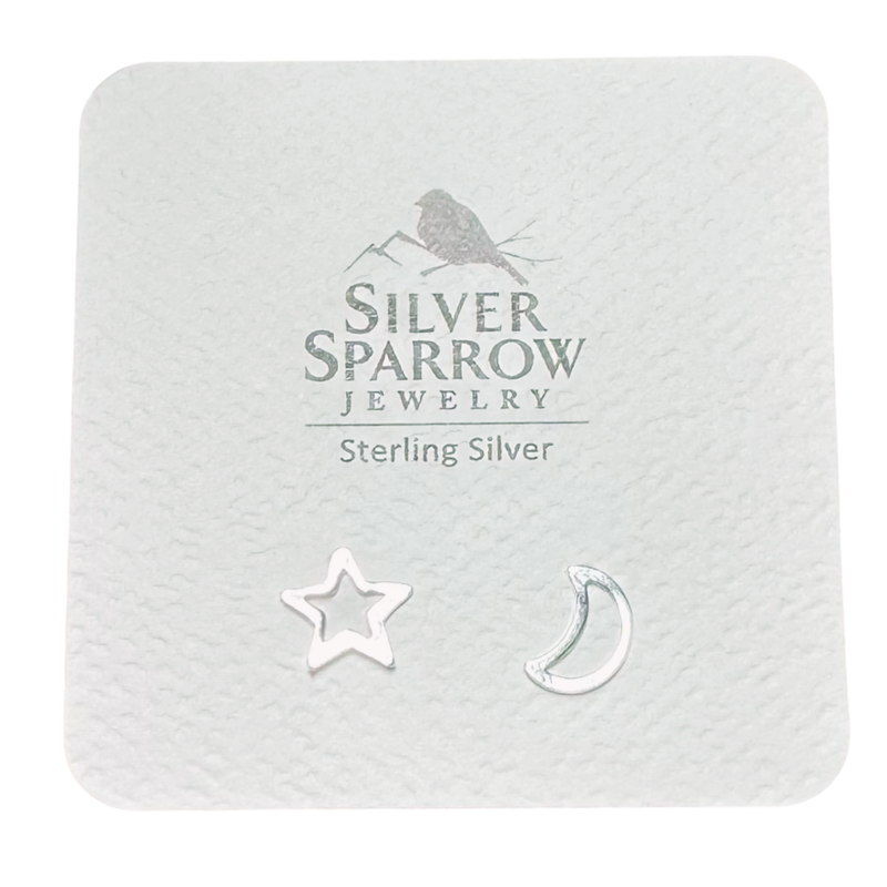 Moon and Sun Stud Earrings in Sterling Silver