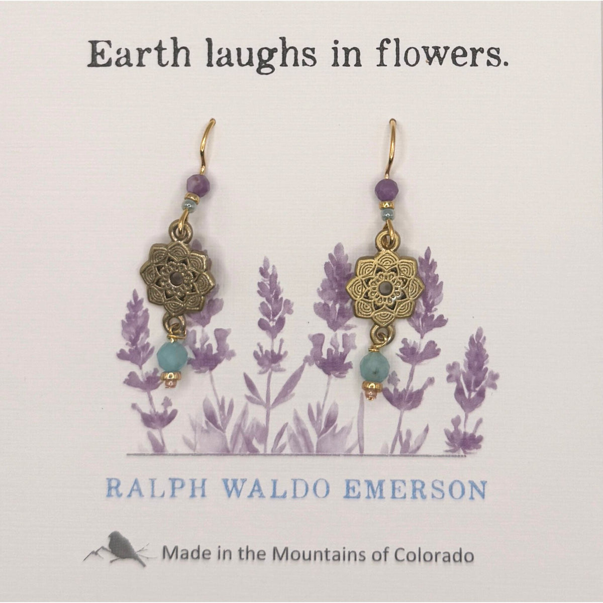 Based on an Emerson quote, this necklace features a flower motif with amazonite and lepidolite