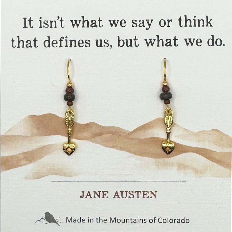 Each design in this collection is based on a quote - inspirational, uplifting, or just fun! The earrings and necklaces are crafted using gemstones, pearls, and other beads with high-quality, hypoallergenic hardware.