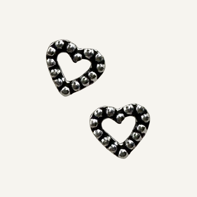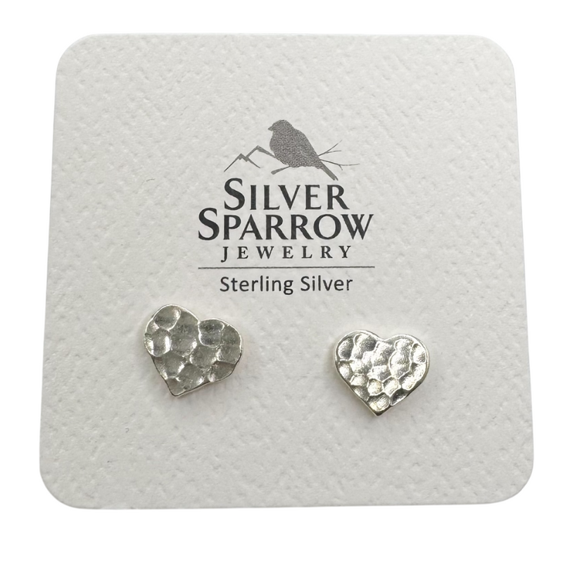 Sterling Silver Pounded Heart Studs