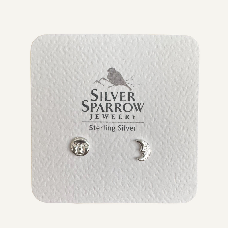Sun and moon sterling stud earrings
