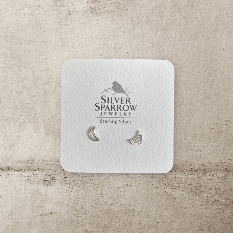 Crescent moon sterling stud earrings