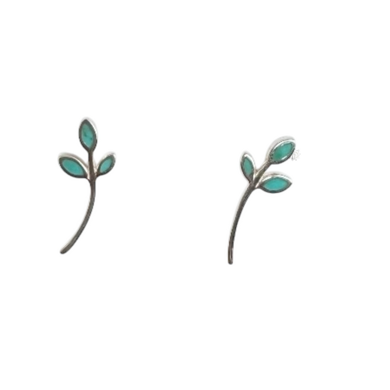Sterling leaf with turquoise inlay stud earrings