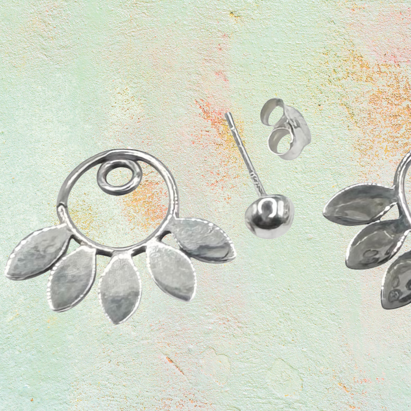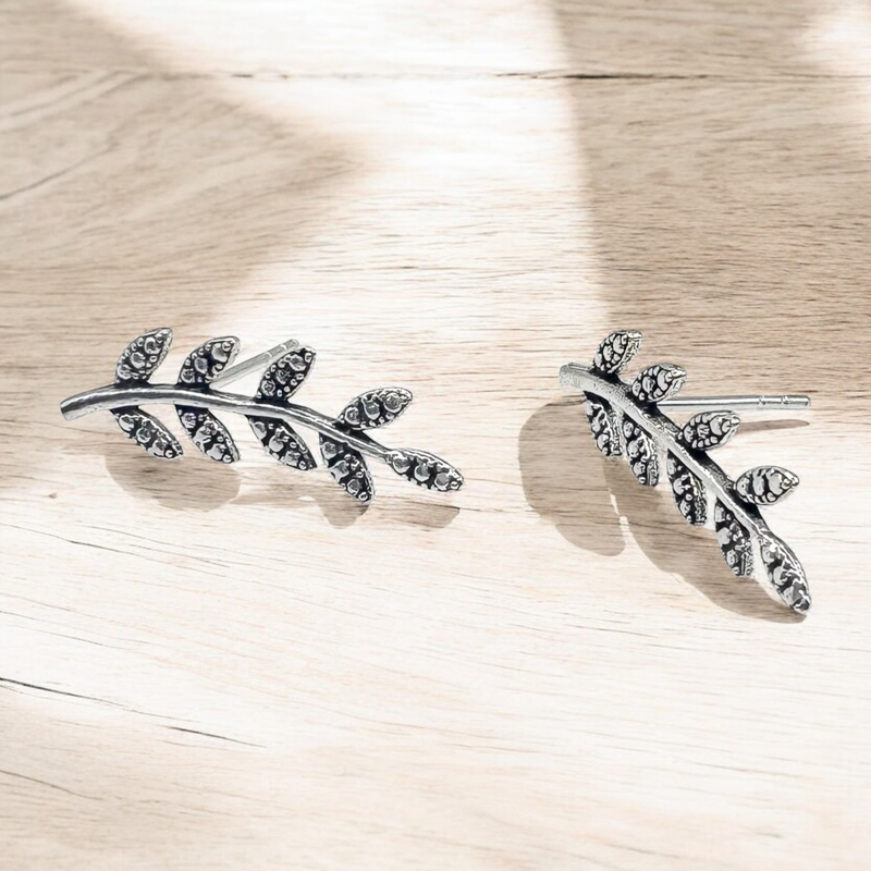 Delicate sterling stud leaf earrings