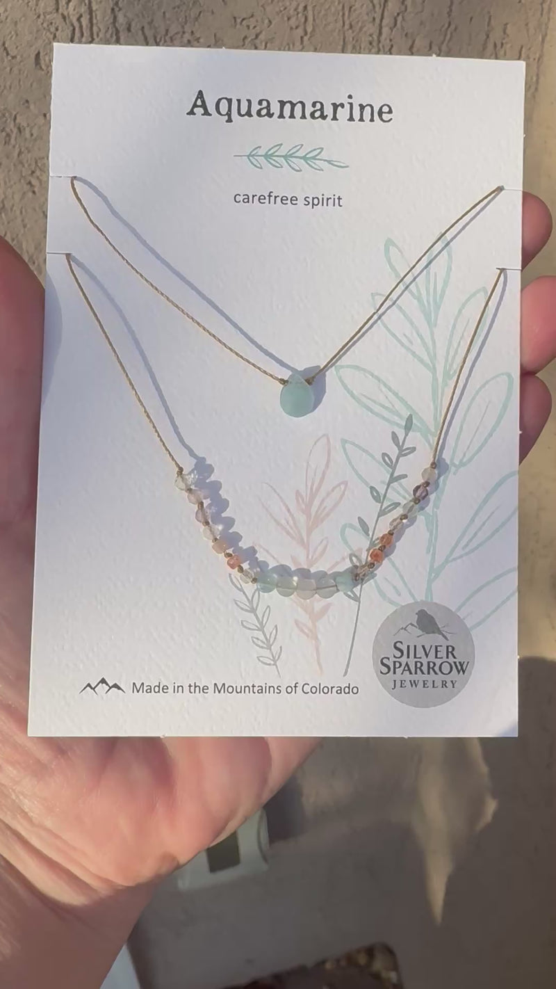 This double-layer necklace, crafted for versatility, can be worn together or separately for the perfect layered look. A beautiful combination of aquamarine, sunstone, and fluorite brings a touch of sweetness to your style.