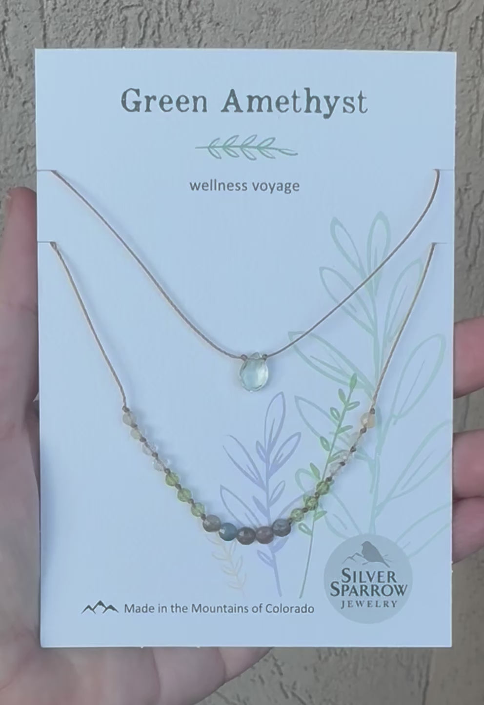This double-layer necklace, crafted for versatility, can be worn together or separately for the perfect layered look. A beautiful combination of green amethyst, citrine, prehnite, and sapphire brings a touch of sweetness to your style.