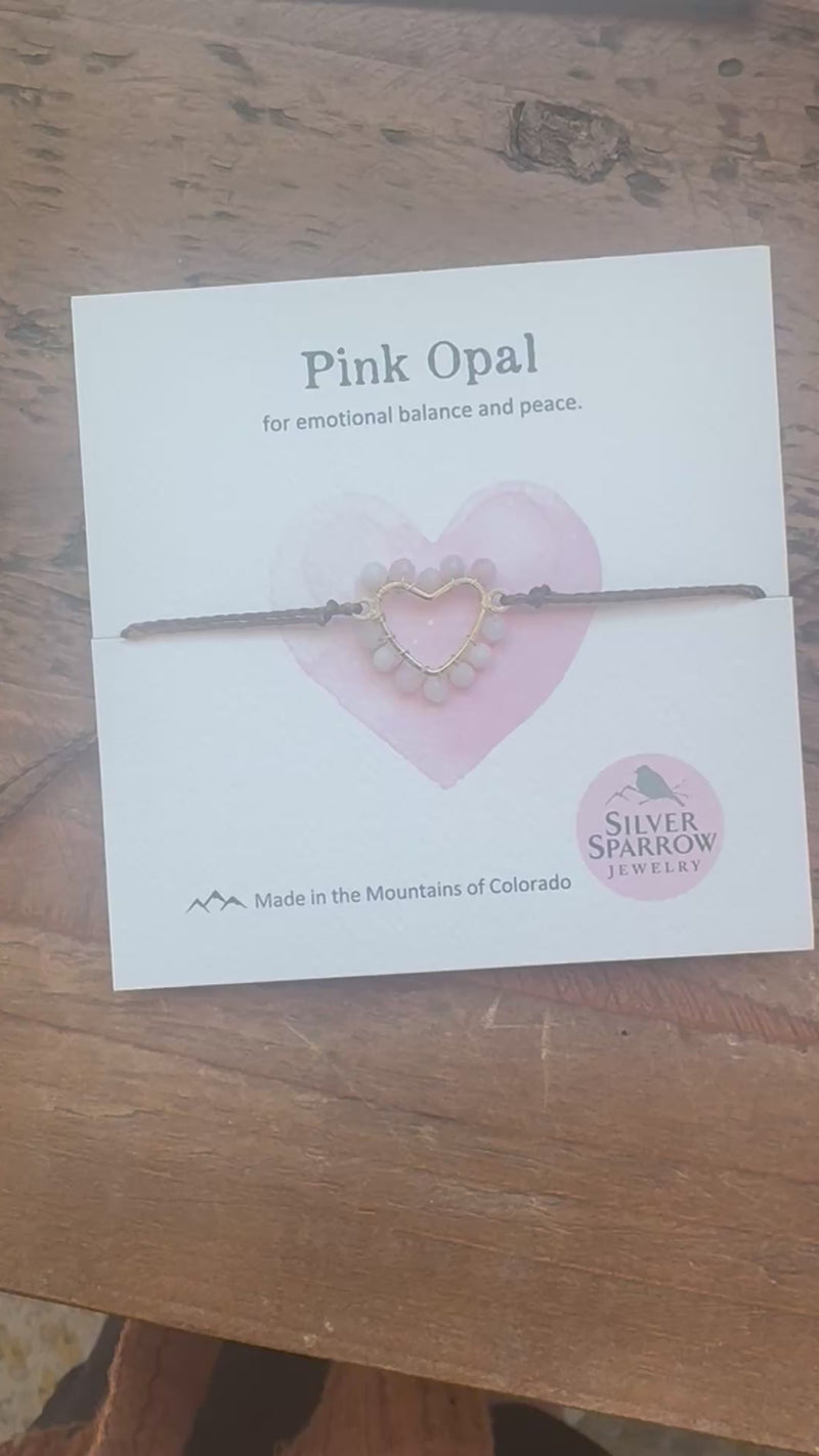 Pink opal woven heart bracelet