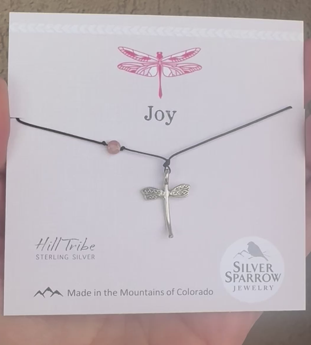 Let this dragonfly inspire you to smile, breathe, and embrace the present moment. It is paired with tourmaline for added happiness.