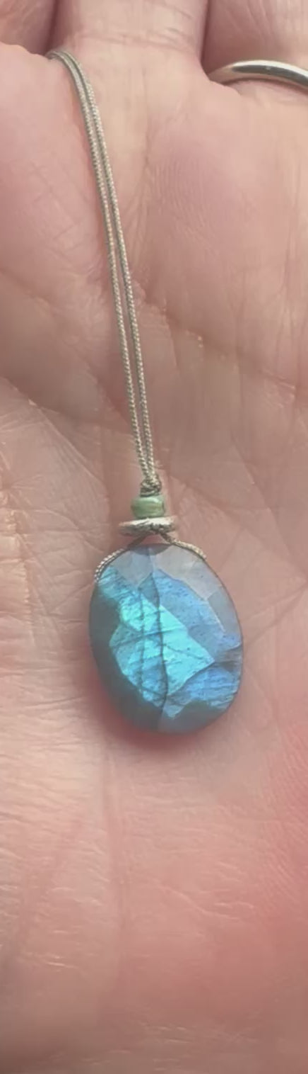 Forever Free Labradorite for calm and balance.  Made with silky nylon cord, adjustable.