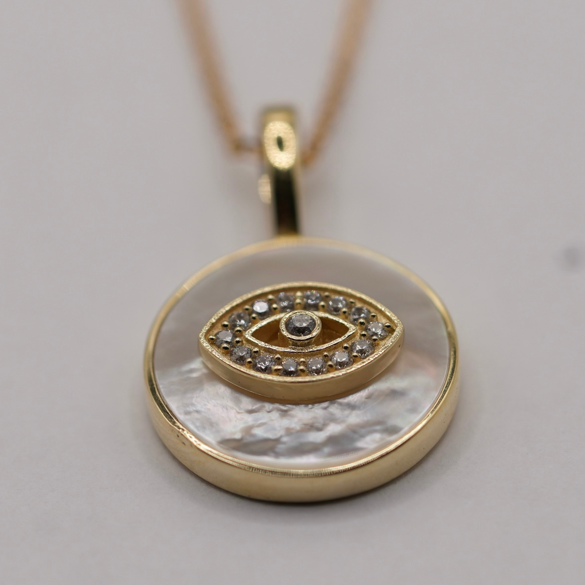 Delicate yet powerful, our Pavé Shell Evil Eye Necklace is a modern talisman designed to protect and shine. At its heart lies the ancient symbol of the evil eye—believed to ward off negative energy—elegantly inlaid on a luminous natural shell and surrounded by shimmering pavé-set crystals.