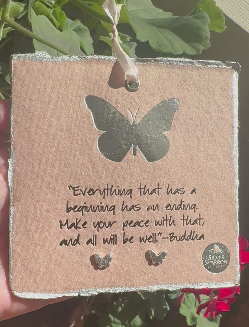 Unique and beautifully crafted paper with a meaningful message about change. These ornamental pieces are so beautiful in every way, finished with hand-dyed silk.